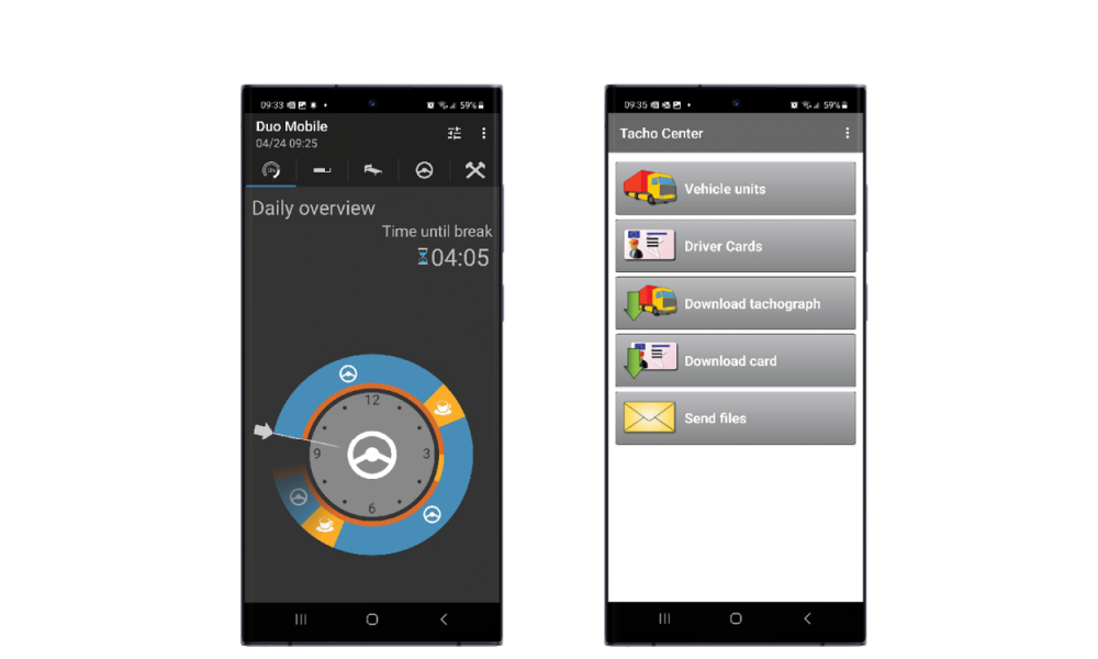 Using the tacho apps in combination with the tachographs from Stoneridge offers plenty of benefits. The Duo Mobile app will ensure that you have a second display at all times and make it easy to view your drive and rest time status, while the Tacho Center app will enable wireless tachograph data management and boost efficiency. As for a transport company, these benefits will put you in a better position to satisfy legal requirements, work more efficiently and save on costs.
